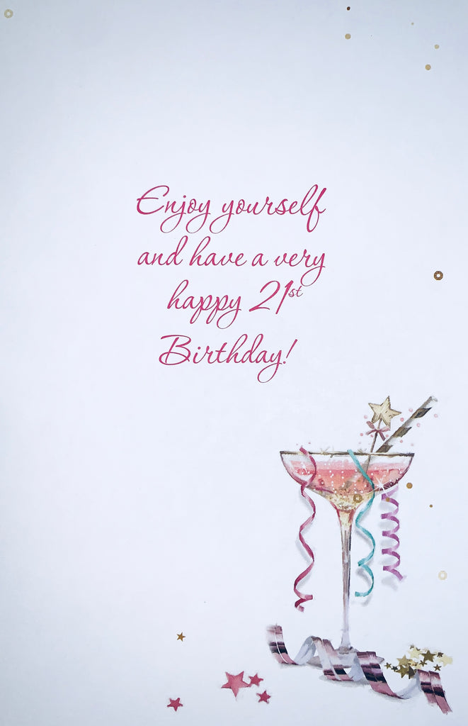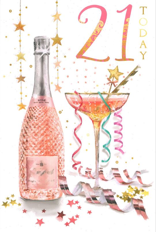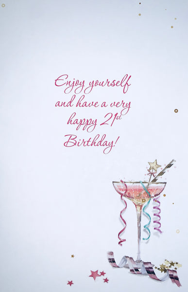 Postage size: LetterCelebrate an extra special milestone with this extra special card! Make their 21st birthday one to remember with this fabulous fizzy-themed birthday card! It's the perfect size for popping in the post and includes a full-colour insert - guaranteed to impress! Cheers! 🥂
