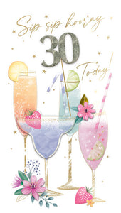 Celebrate their 30th birthday with this beautiful 30th birthday card. A 30th birthday is the perfect time to celebrate with fun cocktails, so this 30th birthday card features a fun, bright cocktail glass design. Multiple decorative jewel attachments give this 30th birthday card a luxury look. The decorative jewels add a bit of shine and sparkle to this lovely 30th birthday card.
