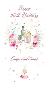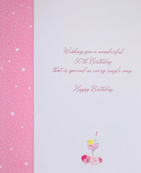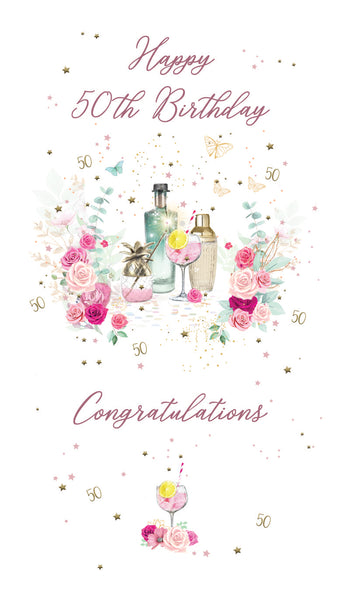 Wish them happy fiftieth birthday with this lovely 50th birthday card. This 50th birthday card features a beautiful traditional birthday cocktails design. This 50th birthday card is printed on high quality board with a hot foil finish and full colour insert. This greeting card is designed and printed in the UK