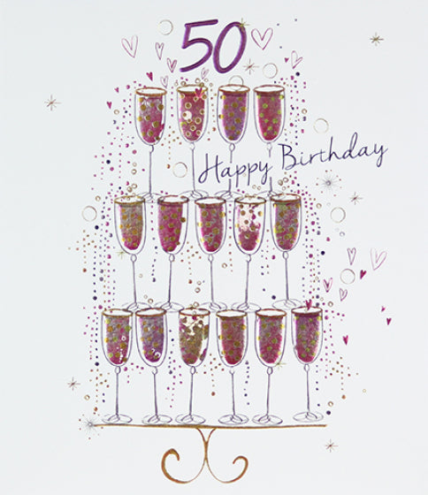 Send them happy birthday wishes on this special landmark birthday with this beautiful 50th birthday card. This age 50 birthday card features a bright, contemporary design. This greeting card is printed on high quality board with a beautiful hot foil finish.