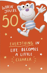 Celebrate their 50th birthday with a little light relief through humour with this funny 50th birthday card. This card jokes about the need for glasses as the years pass. Expertly designed and printed in the UK, this card is created with eco-friendly materials.