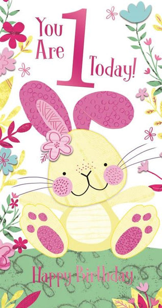 Age 1 birthday card - cute rabbit