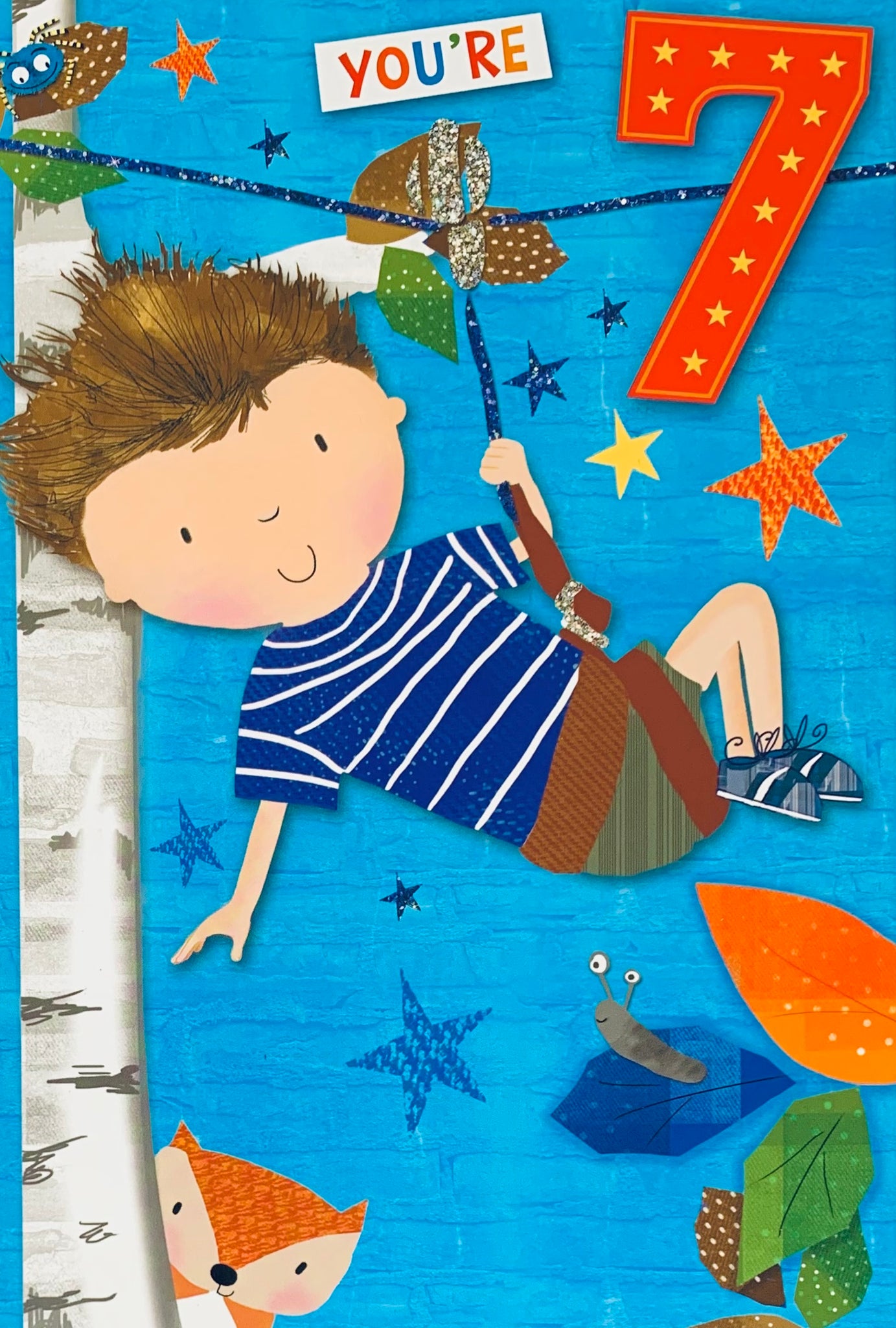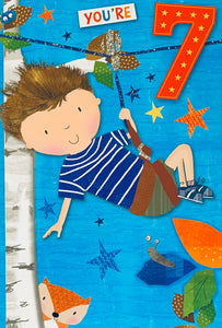 Send them wishes for a fun filled birthday with this age 7 birthday card. This birthday card for a 7th birthday features a fun design with full colour print inside.