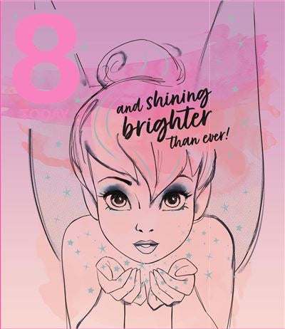 Wish them a magical eighth birthday with this cute Disney Tinker Bell birthday card! Perfect for a princess, this cool card features everyone’s favourite fairy and is printed on sustainable board with a lovely hot foil finish.