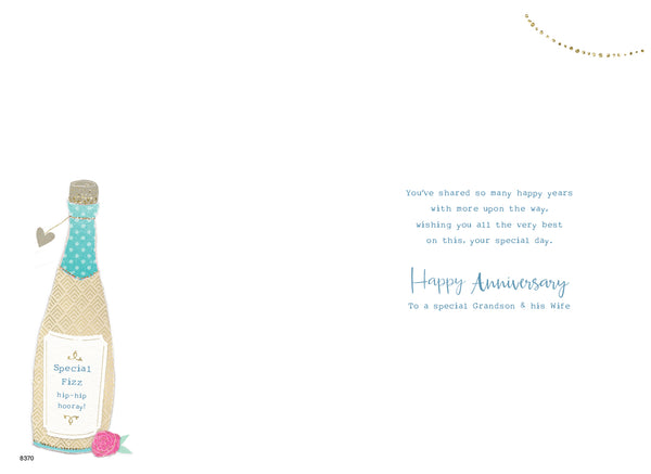 Verse reads: To a wonderful Grandson and his Wife, You've shared so many happy years with more on the way... Wishing you all the very best, on this, your special day. Happy anniversary to a special grandson and his wife.
