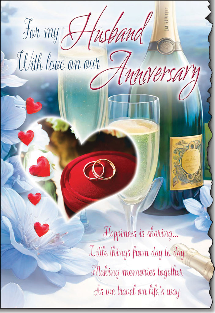 Celebrate your anniversary in sophisticated style with this traditional Husband anniversary card. Featuring a photographic design printed on high quality board with a glitter finish, your significant other will be moved by the beautiful words of the accompanying full-colour insert with its long sentimental verse. Designed and printed in the UK.