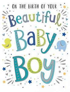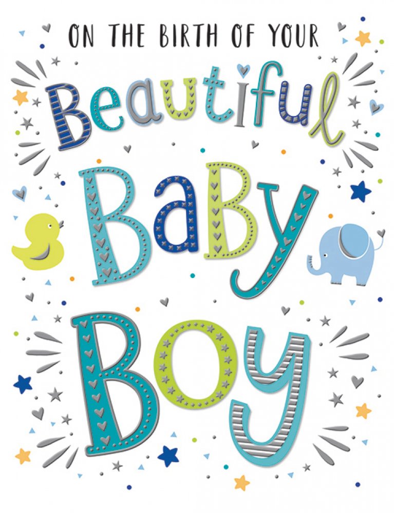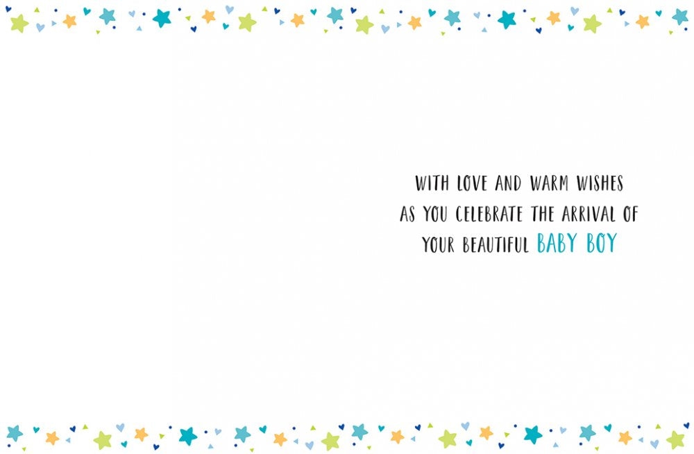 Verse reads: With love and warm wishes, as you celebrate the arrival of your beautiful baby boy