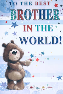Send your happy birthday wishes to your brother with this cute brother birthday card. This brother birthday card features are cute bear design. This greeting card has a hot foil finish and full colour print inside.