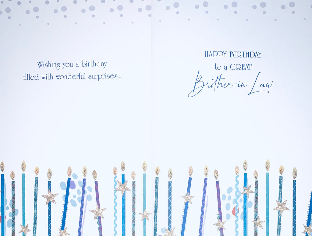 Send happy birthday thoughts and wishes to your Brother-in-law with this Modern Brother in law birthday card. This birthday card for Brother in law features a contemporary design with a hot foil finish and full colour insert. Short verse.