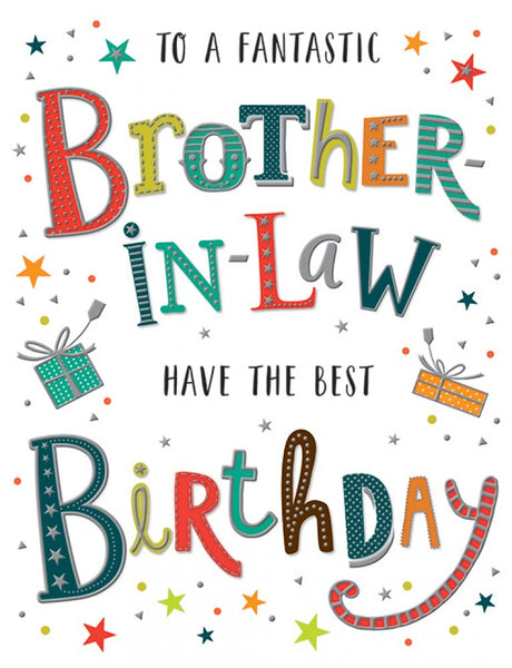 Send happy birthday wishes to your Brother in law with this Brother in law birthday card. This birthday card for Brother in law features a bold contemporary design with a hot foil finish. This greeting card has full colour print inside.