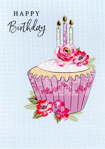 Send birthday greetings with this birthday card for her. This general birthday card for her has a pretty cupcake design with glitter finish and multiple decorative attachments.