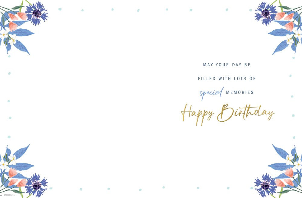 Wish her happy birthday with this beautiful birthday card for her. This General birthday card for her features a lovely traditional floral design with a hot foil finish. This greeting card has full colour insert.