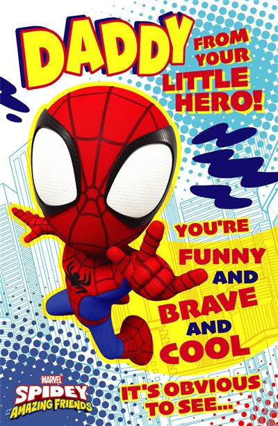 Say "Happy Birthday, Superhero!" in a fun and stylish way with this Spiderman Daddy birthday card. Its hot-foil finish and full-color print will amaze even Spidey's friends, and its heartfelt short verse will be sure to bring a smile to your Daddy's