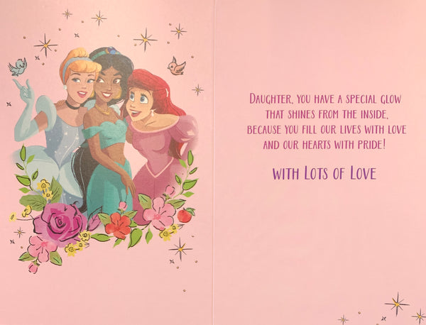 Give your daughter the royal treatment on her birthday with this enchanting Disney Princesses birthday card! Featuring iconic characters like Sleeping beauty and Cinderella, it's a magical way to wish your beloved daughter happy birthday. Plus, it's printed on high quality board, so it's fit for any princess!