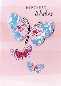 Send birthday greetings with this birthday card for her. This general birthday card for her has a pretty butterfly design with glitter finish and decorative attachment.