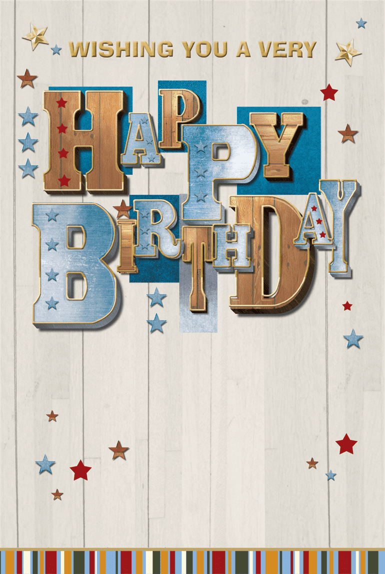 Wish him a happy birthday with this birthday card for him. This male birthday card features a contemporary design with hot foil finish. This greeting card has a full colour print inside. Short verse.