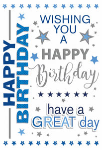 Wish him happy birthday with this birthday card for him. This birthday card for him features a contemporary design with a hot foil finish. Full colour print inside greeting card.