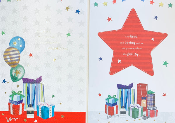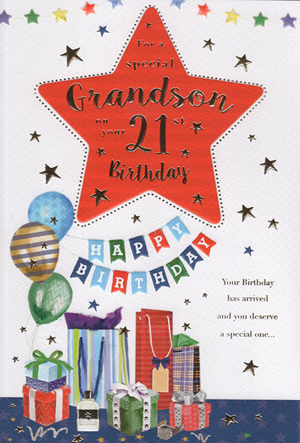 Celebrate your Grandson’s special birthday with this Grandson 21st birthday card. Twenty one is a special birthday so wish your Grandson happy birthday with a special greeting card. This Grandson 21st birthday card features a hot foil finish and a full colour multi page insert. This Grandson 21st birthday card is printed on high quality board. This Grandson 21st birthday card is designed and printed in the UK. Long verse.