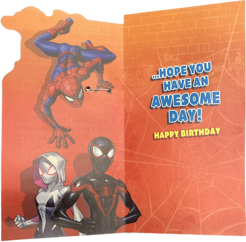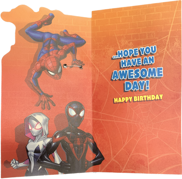 Wish your superhero grandson a web-tastic birthday with this Spiderman Grandson birthday card! It's guaranteed to make him feel extra special with its full-colour print inside and awesome holographic foil finish. Plus, he'll get an awesome Spiderman badge to commemorate the day! No need to "spidey sense" your way to the perfect card, this one's a winner!