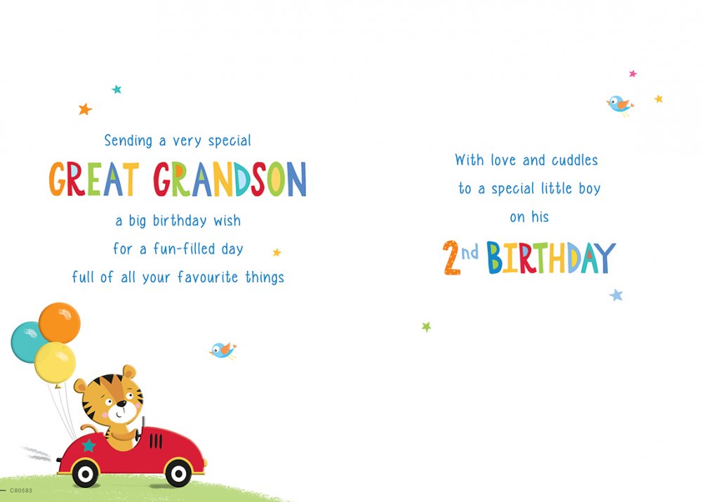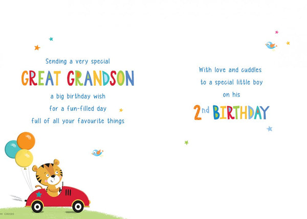 Great Grandson 2nd birthday card- cute tiger