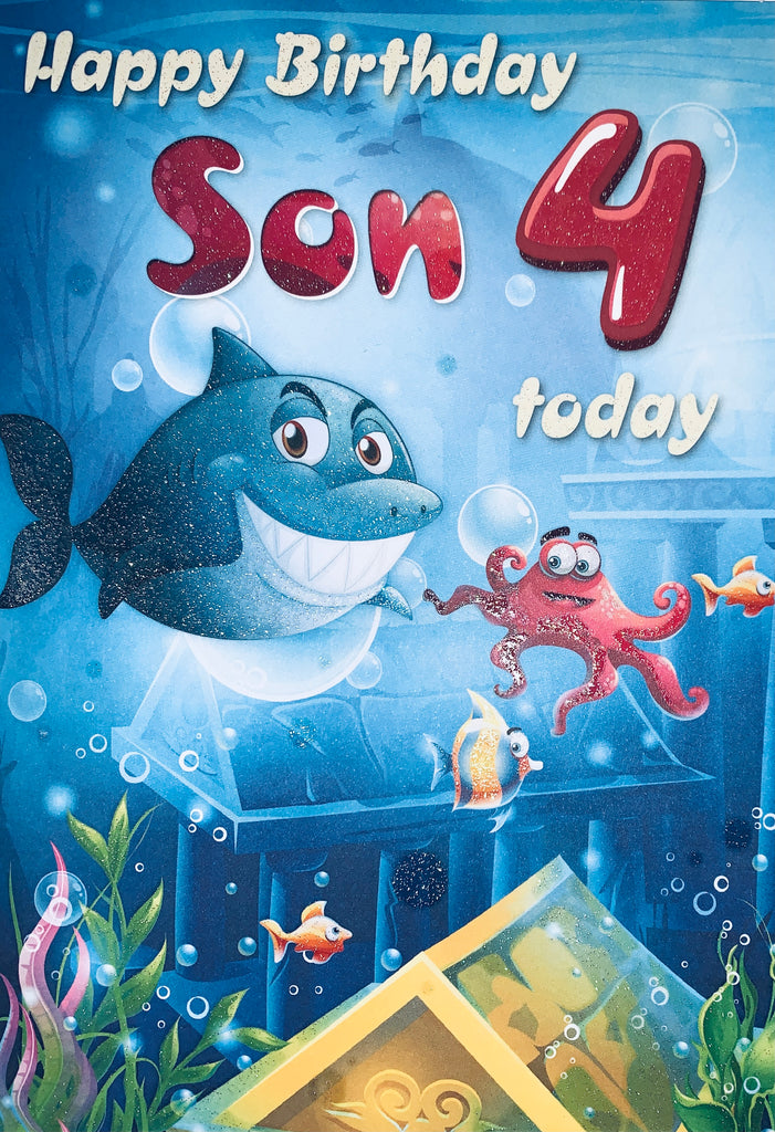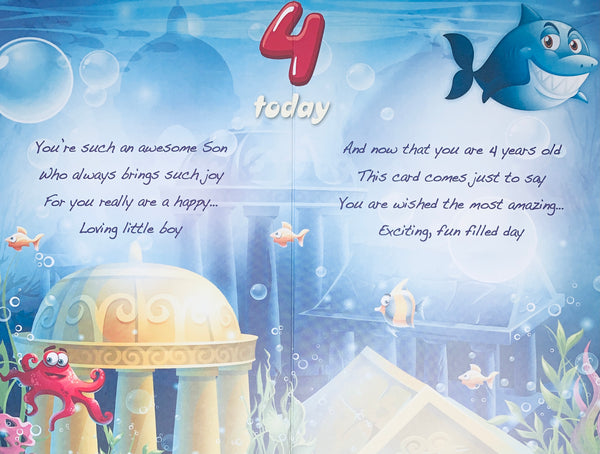 Son 4th birthday card - cute shark