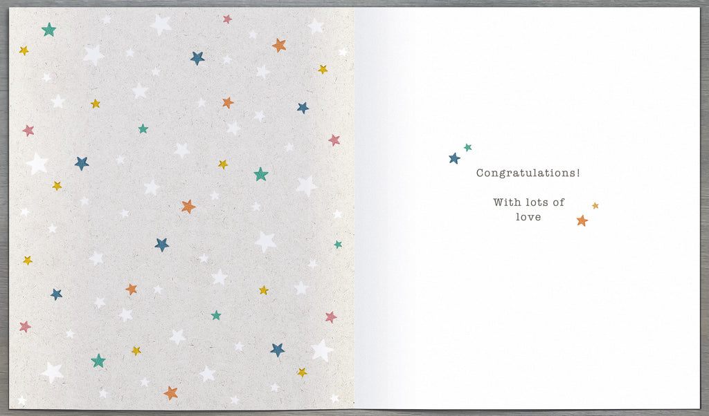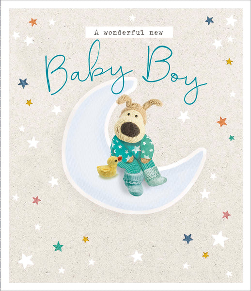 Welcome the beautiful little baby boy into the world with this super Cute Boofle birth of a baby boy congratulations card. This baby boy birth card is printed on high quality board and has a gorgeous sparkling blue foil finish.