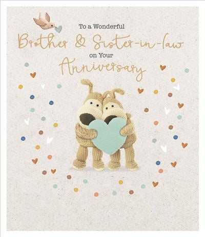 Mark your Brother and Sister in law's wedding anniversary with this adorable Boofle card. Crafted from high-grade board with a hot foil finish and multi-colored insert, this card is manufactured and printed in the UK, from eco-friendly materials.