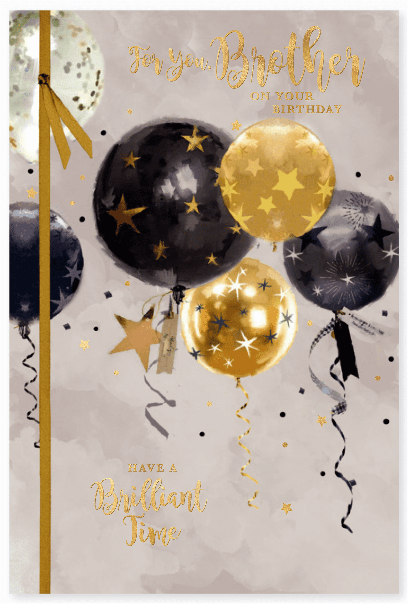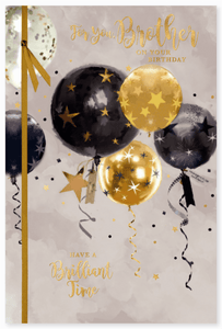 Celebrate your Brother’s birthday with this traditional Brother birthday card. This Brother birthday card features a traditional balloon design and has a hot foil finish. This Brother birthday card has a full colour print inside.