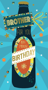 Send happy birthday wishes to your brother with this brother birthday card. This birthday card for brother features of contemporary birthday beers design. This greeting as a hot foil, finish and full colour print inside.