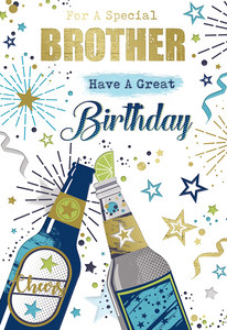 Wish your Brother happy birthday with this Brother birthday card. This Brother birthday card features a fun birthday beers design. Inside this Brother birthday card is a full colour insert. This greeting card features a hot foil finish and is designed and printed in the UK.