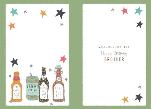 Make your Brother's birthday extra special with this eye-catching Brother birthday card. The modern beer design on this high quality card, complete with a bright gold foil finish and full color insert, is sure to impress. Celebrate your Brother's special day with this unique and stylish birthday card.