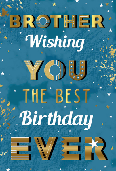 This brother birthday card features a modern text design with an eye catching modern text design, golden foil finish and a full colour insert. Help your brother celebrate his birthday and let him know you are thinking of him on his birthday with brother birthday greeting card.