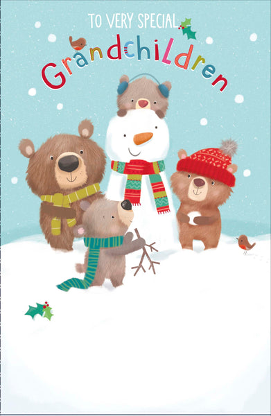 To Grandchildren Christmas card - cute winter animals