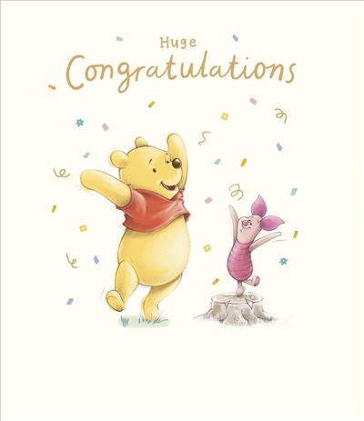 Send them congratulations on their success with this cute congratulations card. This cute congratulations card features the iconic Winnie the Pooh and piglet and is printed on high quality board with an eye catching gold foil finish and full colour print inside.