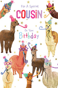 Cousin birthday card - party llamas
