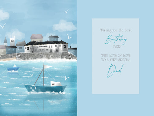 Dad birthday card - coastal town