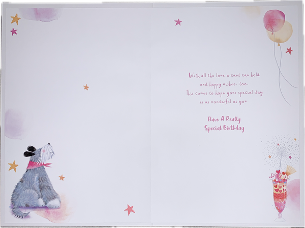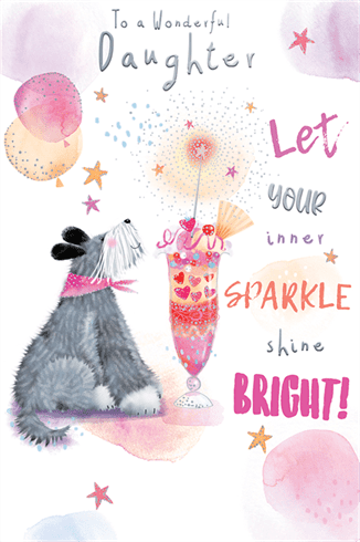 Celebrate your Daughter’s birthday with this cute daughter birthday card featuring a cute dog design. This daughter birthday card has a silver foil finish and a full colour insert. This daughter birthday card is produced in the UK.