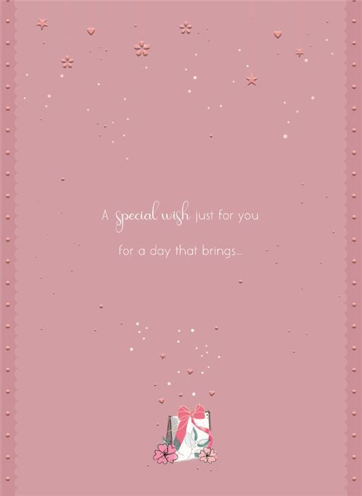 This Daughter in law birthday card is the perfect way to say 'Happy Birthday!' to your Daughter in law. Finished with a luxurious gold foil, the card is printed on high-quality board and features a beautiful 3 fold design in soft pastel colours. The inside of the card features a full-colour print, and the card is proudly designed and printed in the UK.