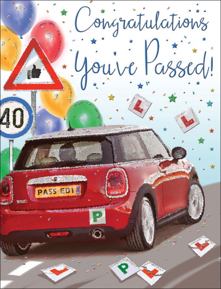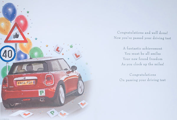 Driving test congratulations card red mini