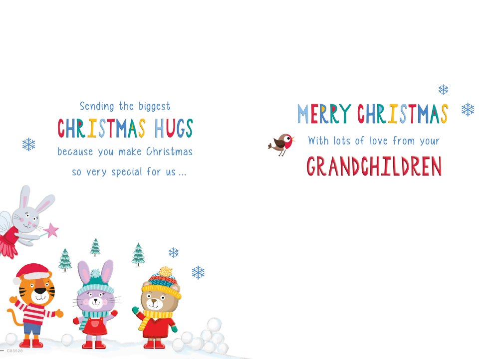 Verse reads: Sending The biggest Christmas hugs because you make Christmas so very special for us. Merry Christmas with lots of love from your grandchildren.
