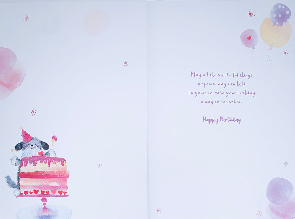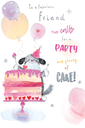 Celebrate your friend’s birthday with this cute friend birthday card featuring a cute dog design. This friend birthday card has a silver foil finish and a full colour insert. This greeting card is produced in the UK.