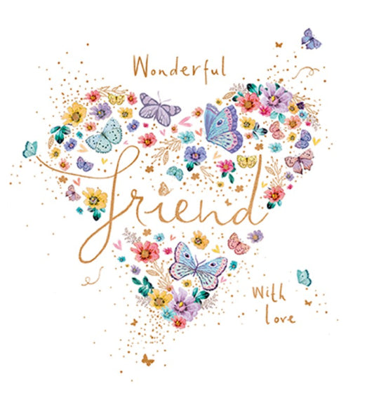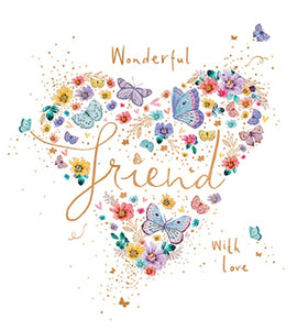 Send your friend happy birthday wishes on their special day with this beautiful friend birthday card. This birthday card for friend features a beautiful f heart of flowers design. This greeting card is printed on high quality textured board with a bright hot foil finish.