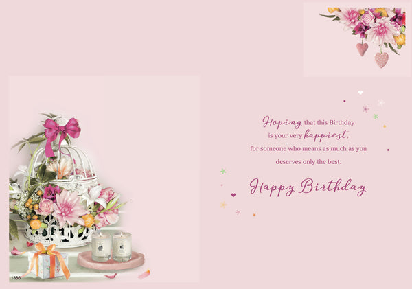 Verse reads: Hoping That this birthday is your very happiest, for someone who means as much as you deserves only the best. Happy birthday.