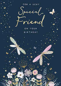Let your friend know how amazing they are with this special friend birthday card. This special friend birthday card has a lovely wild meadow design. This greeting card is printed on high quality board with a lovely gold foil finish. This greeting card is designed and printed in the UK on high quality board sourced from environmentally responsible sources.