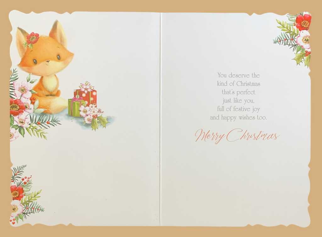 Wish your friend a wonderful Christmas with this cute special friend Christmas card. The special friend Christmas card features a cute festive fox and floral design with a red foil finish and full colour print inside. This greeting card is designed in the UK.
