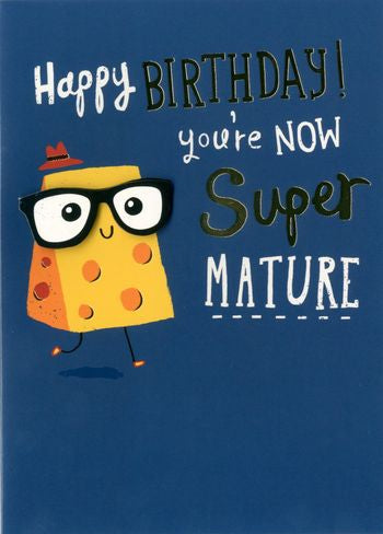 Send birthday greetings with this funny birthday card. This general birthday card has a funny cheese pun design with a hot foil finish and decorative attachment.