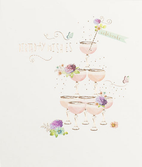 Send her happy birthday wishes on her special day with this beautiful birthday card for her. This birthday card for her features a beautiful contemporary birthday champagne design. This greeting card is printed on high quality textured board with a bright hot foil finish.