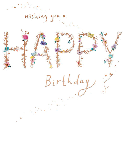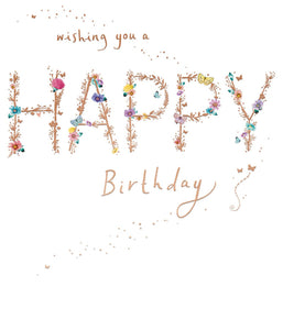 Send her happy birthday wishes on her special day with this beautiful birthday card for her. This birthday card for her features a beautiful contemporary floral design. This greeting card is printed on high quality textured board with a bright hot foil finish.