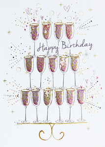 Send them happy birthday with this bright colourful birthday card. This birthday card features a bold, beautiful birthday Prosecco design. This birthday card for her is printed on high quality board with a stunning hot foil finish. This greeting card is designed and printed in the UK.