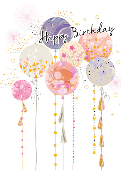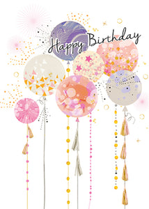 Send them happy birthday with this beautiful birthday card. This birthday card features a beautiful balloon design. This birthday card for her is printed on high quality board with a stunning hot foil finish. This greeting card is designed and printed in the UK.